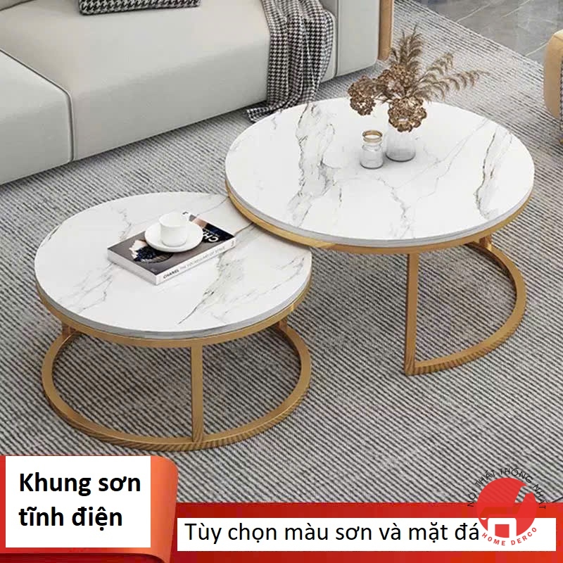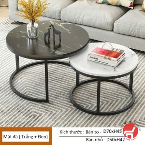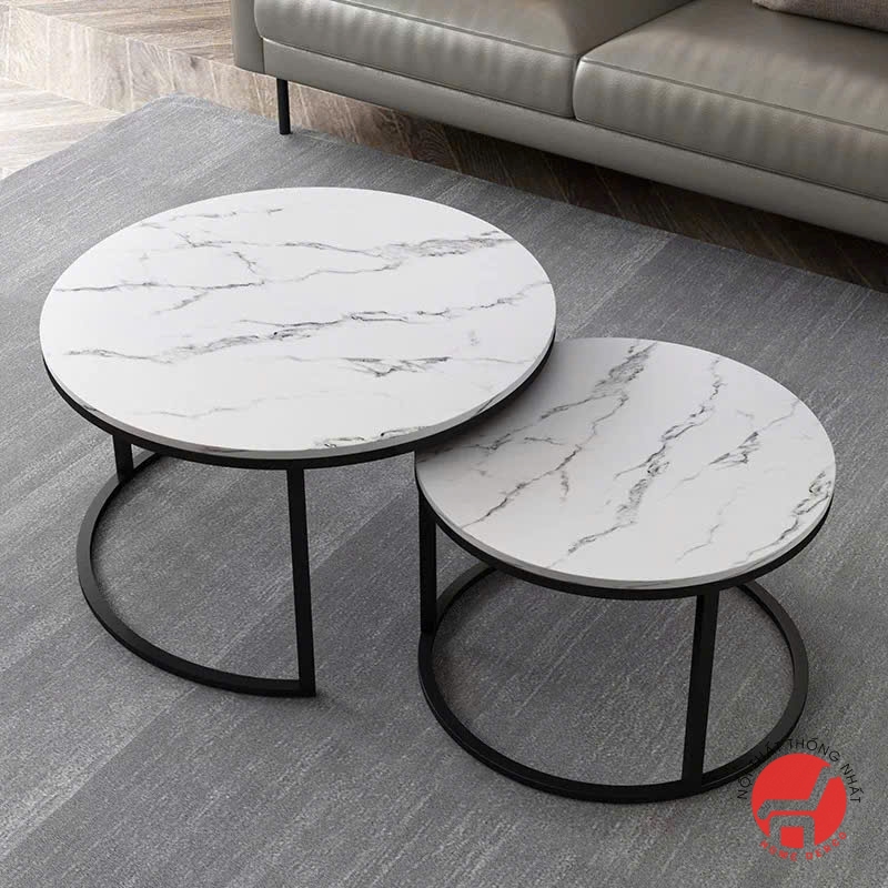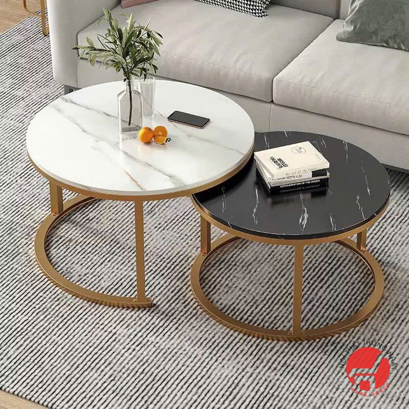 Mặt bàn được làm từ đá tự nhiên hoặc đá nhân tạo, mang lại vẻ đẹp tinh tế và sang trọng. Với bề mặt bóng loáng, dễ dàng vệ sinh, bàn tròn đôi này không chỉ là nơi lý tưởng để thưởng thức trà chiều, mà còn là điểm nhấn khác biệt cho không gian phòng khách, hoặc phòng ăn của bạn.