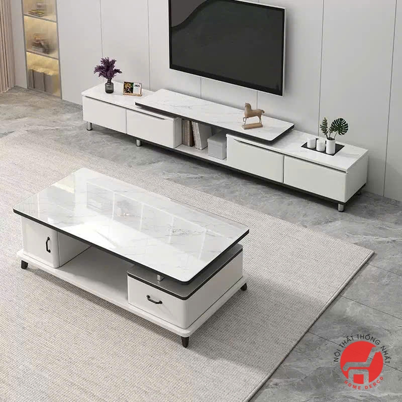 Bộ bàn kệ gỗ CN mặt đá – KG201
