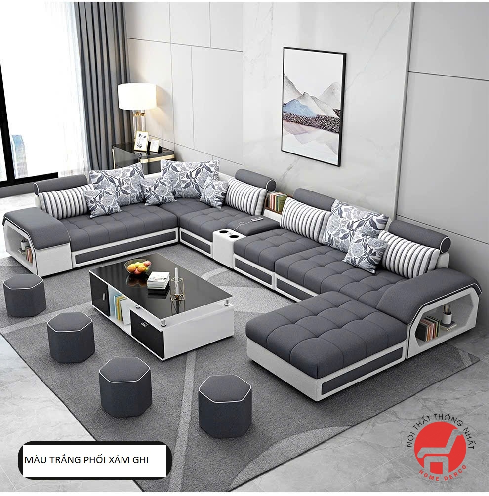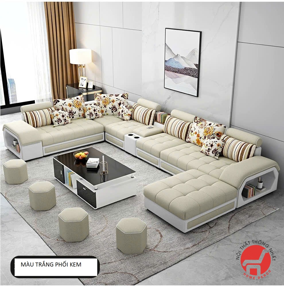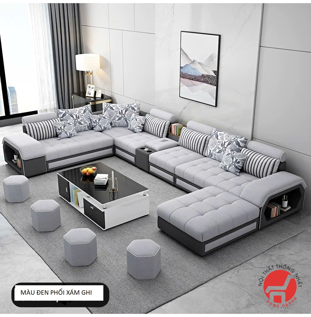 Bộ ghế sofa phòng khách vải nỉ cao cấp chữ U mã SFN005
