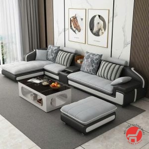- Chất liệu cao cấp: Sofa phòng khách rộng thường được làm từ các chất liệu cao cấp như da thật, da tổng hợp, vải nỉ hoặc vải nhung. Chất liệu da thật mang đến sự sang trọng và độ bền cao, trong khi vải nỉ hoặc nhung lại tạo cảm giác êm ái và thoải mái khi ngồi lâu. Đối với gia đình có trẻ nhỏ, da tổng hợp dễ vệ sinh và bảo trì là lựa chọn phổ biến.