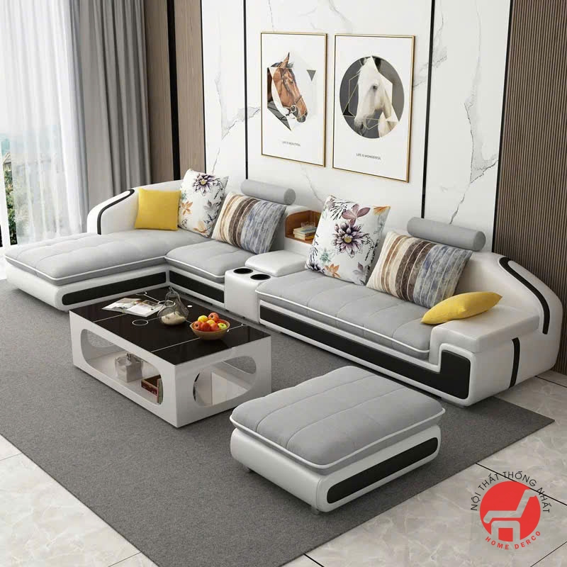 - Kích thước lớn và rộng rãi: Sofa cho phòng khách rộng thường có kích thước từ 3 chỗ ngồi trở lên, với chiều dài và bề rộng đủ để phục vụ nhiều người cùng lúc. Một số mẫu có thiết kế góc chữ L hoặc chữ U, giúp tạo không gian ngồi thoải mái và phù hợp với những phòng khách có diện tích lớn.