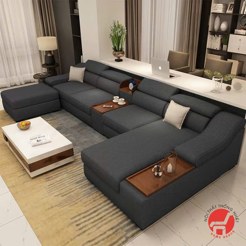 - Tay ghế Sofa thoải, lượn sóng đem lại cảm giác mềm mại và sang trọng