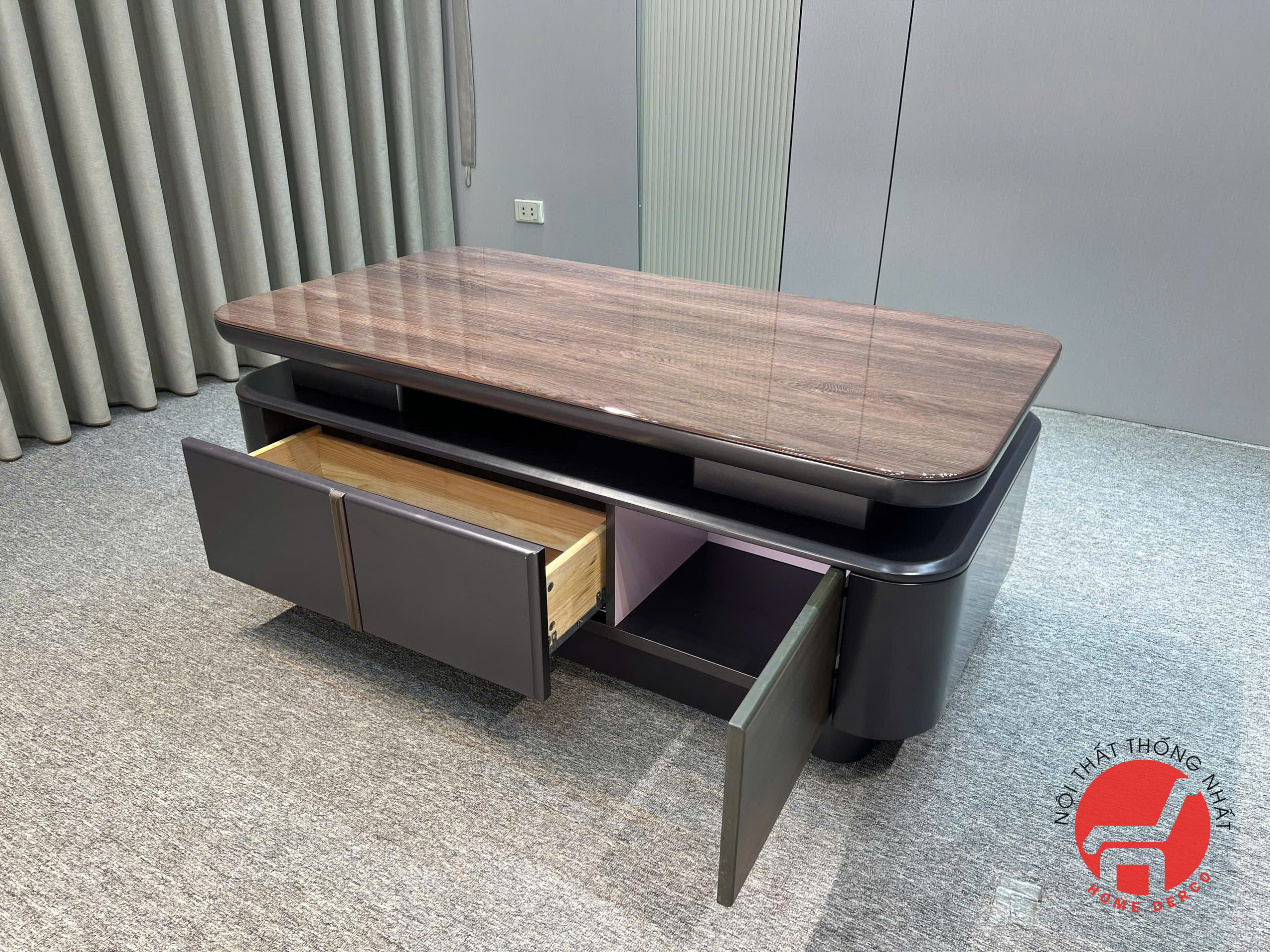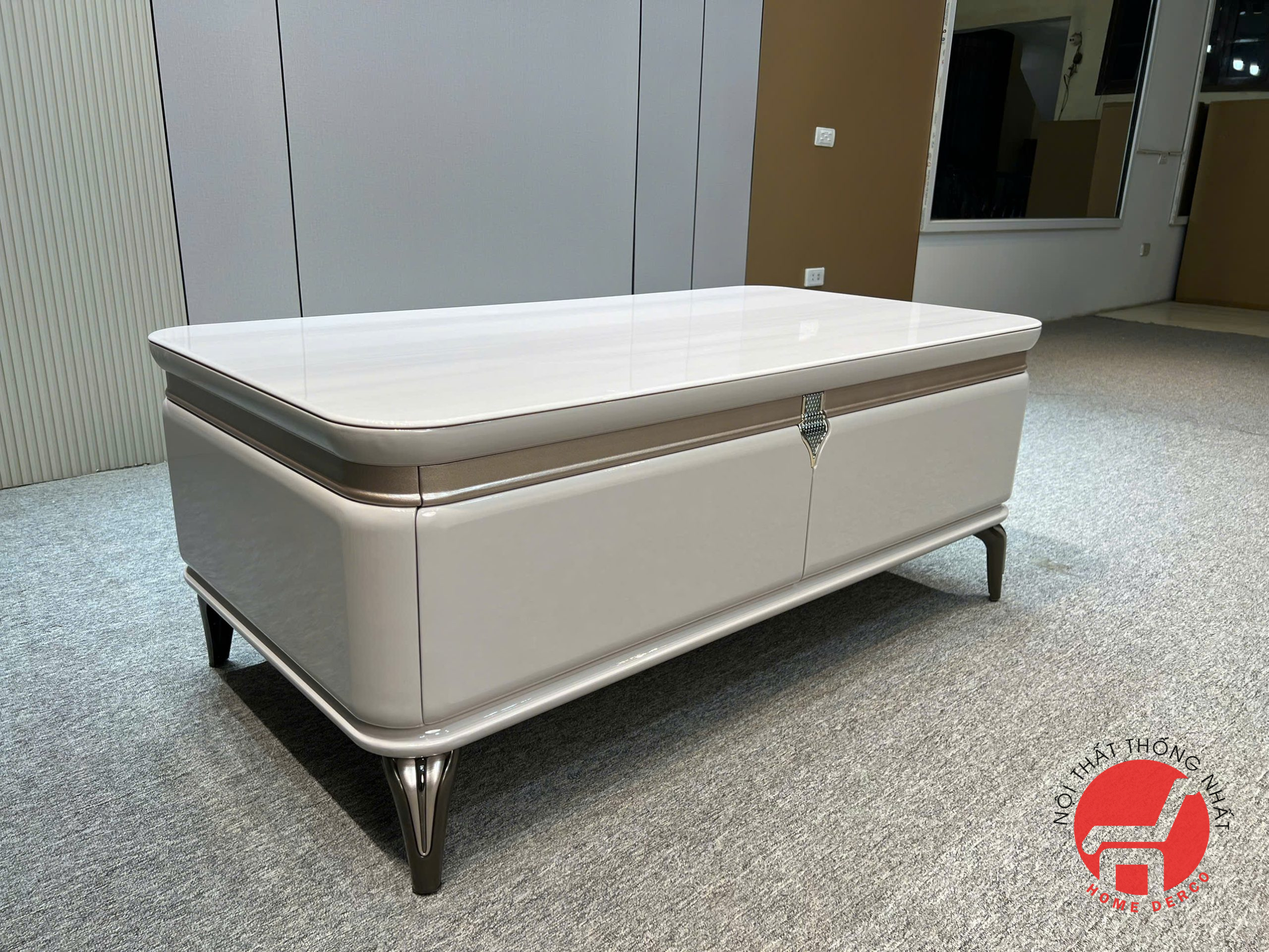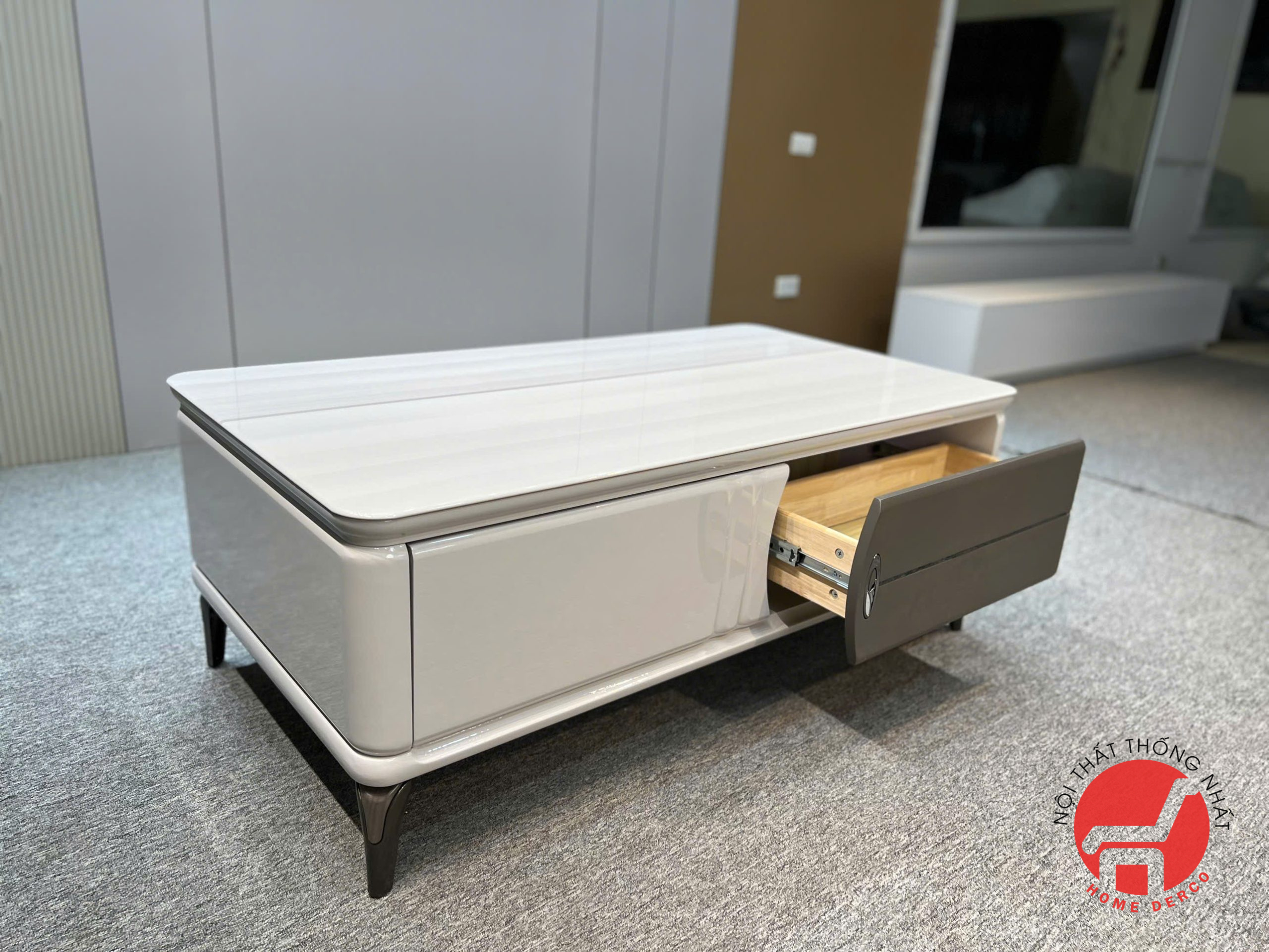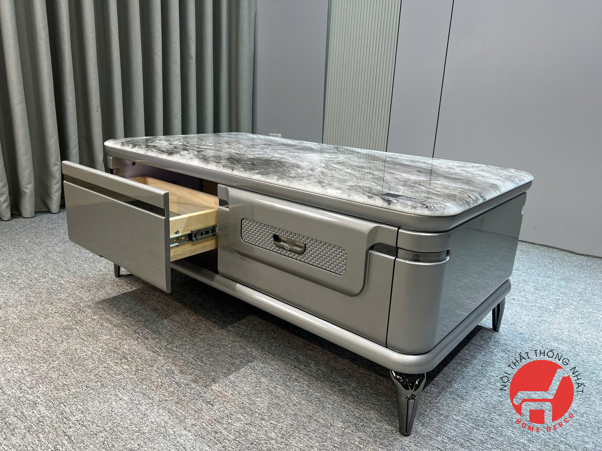 Một số mẫu bàn trà nhập khẩu cao cấp tích hợp các tính năng thông minh như ray giảm chấn cho ngăn kéo, bề mặt sơn piano bóng gương chống bám bẩn, mang lại trải nghiệm sử dụng hoàn mỹ.